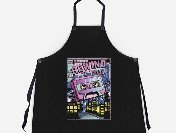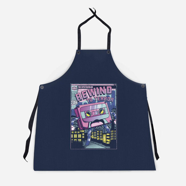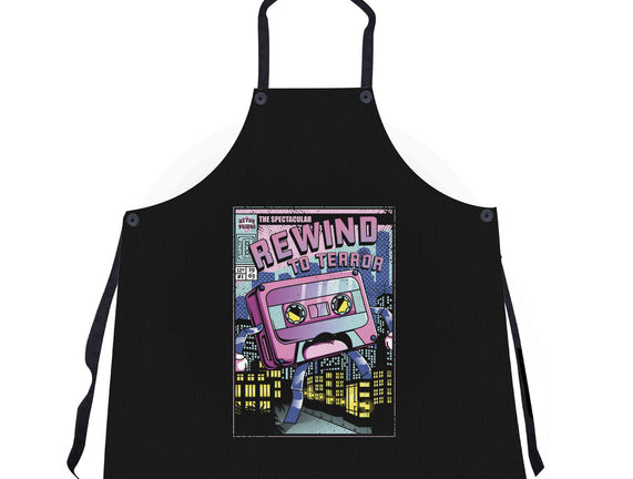 Rewind To Terror is a great Unisex Kitchen Apron from our amazing collection of custom fandom inspired products. This product was designed by Donnie, who is part of our exclusive pop-culture inspired artist community.
