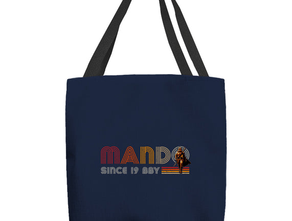 Mando Since 19BBY is a great None Basic Tote Bag from our amazing collection of custom fandom inspired products. This product was designed by DrMonekers, who is part of our exclusive pop-culture inspired artist community.