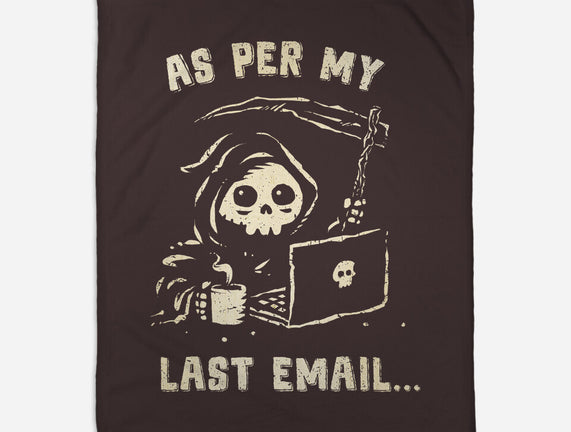 As Per My Last Email is a great None Fleece Blanket from our amazing collection of custom fandom inspired products. This product was designed by kg07, who is part of our exclusive pop-culture inspired artist community.