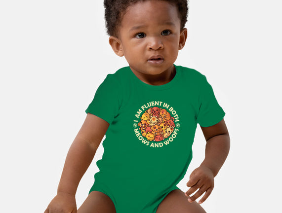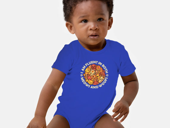 Fluent In Meows And Woofs is a great Baby Basic Onesie from our amazing collection of custom fandom inspired products. This product was designed by erion_designs, who is part of our exclusive pop-culture inspired artist community.