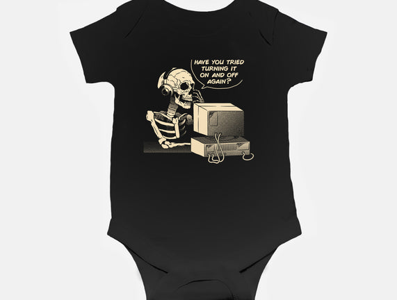 Skeleton IT Support is a great Baby Basic Onesie from our amazing collection of custom fandom inspired products. This product was designed by tobefonseca, who is part of our exclusive pop-culture inspired artist community.
