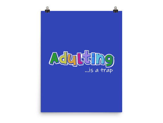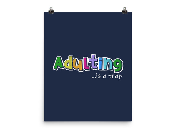 Adulting Is A Trap is a great None Matte Poster from our amazing collection of custom fandom inspired products. This product was designed by NMdesign, who is part of our exclusive pop-culture inspired artist community.