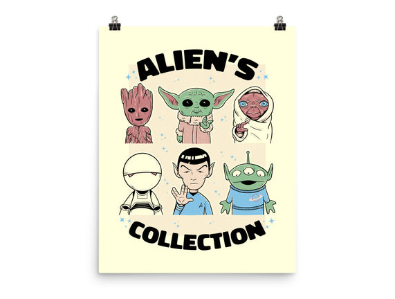 Alien's Collection is a great None Matte Poster from our amazing collection of custom fandom inspired products. This product was designed by Umberto Vicente, who is part of our exclusive pop-culture inspired artist community.