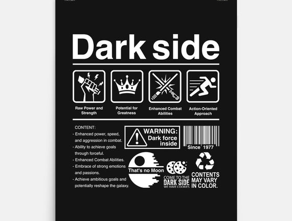 Dark Side Label is a great None Matte Poster from our amazing collection of custom fandom inspired products. This product was designed by DrMonekers, who is part of our exclusive pop-culture inspired artist community.