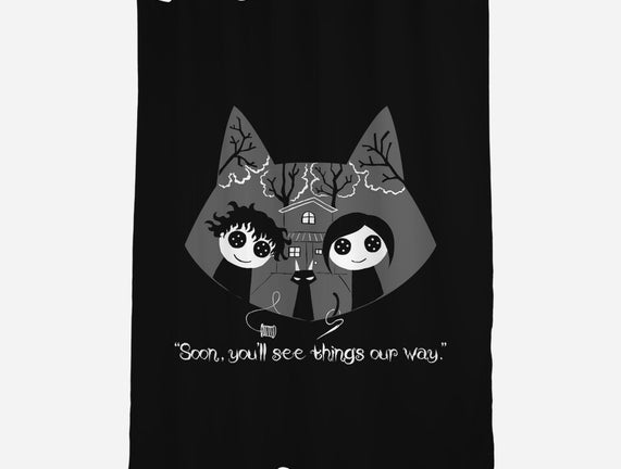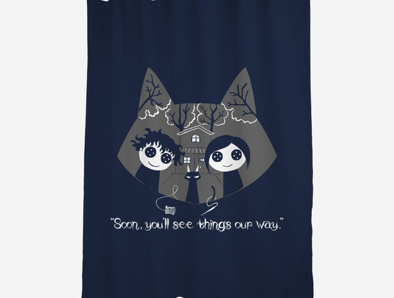 Button Eyes is a great None Polyester Shower Curtain from our amazing collection of custom fandom inspired products. This product was designed by naomori, who is part of our exclusive pop-culture inspired artist community.