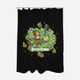100% polyester. Single sided print. Includes 12 button holes for hook placement. PVC liner not included. Machine wash separately in cold water on delicate cycle and tumble dry on low heat. Do not bleach. Can be ironed with low heat.