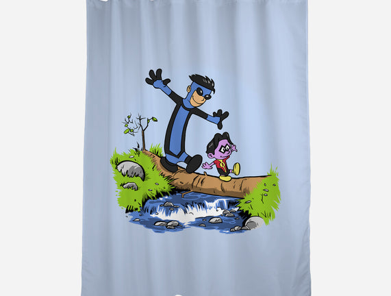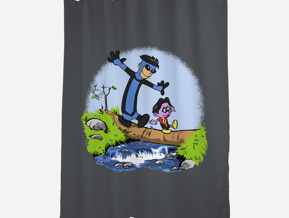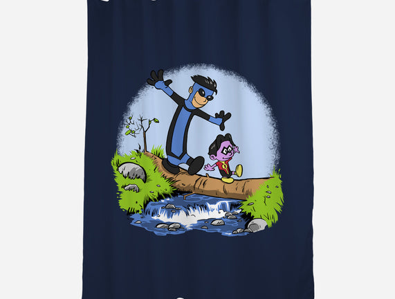 100% polyester. Single sided print. Includes 12 button holes for hook placement. PVC liner not included. Machine wash separately in cold water on delicate cycle and tumble dry on low heat. Do not bleach. Can be ironed with low heat.