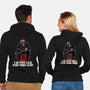 50% cotton, 50% polyester. Classic fit. Metal zipper and pouch pockets. Artwork printed on the back. Wash inside-out in cold water and hang on tumble dry on low heat to maximize the life of your sweatshirt.