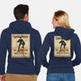 50% cotton, 50% polyester. Classic fit. Metal zipper and pouch pockets. Artwork printed on the back. Wash inside-out in cold water and hang on tumble dry on low heat to maximize the life of your sweatshirt.
