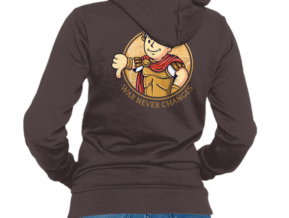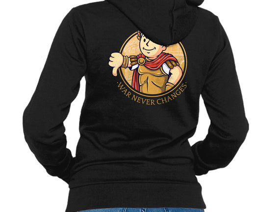50% cotton, 50% polyester. Classic fit. Metal zipper and pouch pockets. Artwork printed on the back. Wash inside-out in cold water and hang on tumble dry on low heat to maximize the life of your sweatshirt.