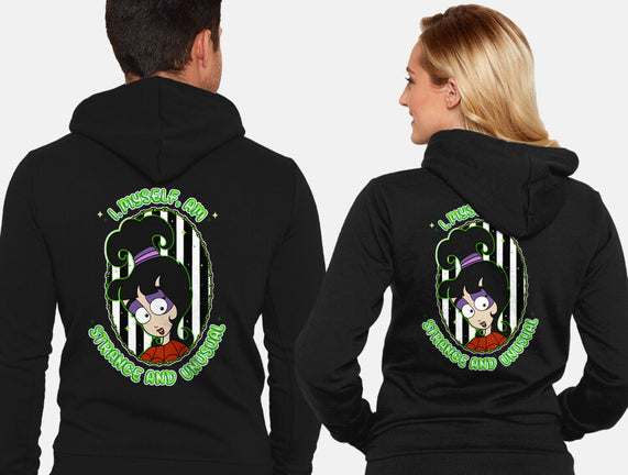 I Myself Am Strange And Unusual is a great Unisex Zip-Up Sweatshirt from our amazing collection of custom fandom inspired products. This product was designed by Alexhefe, who is part of our exclusive pop-culture inspired artist community.