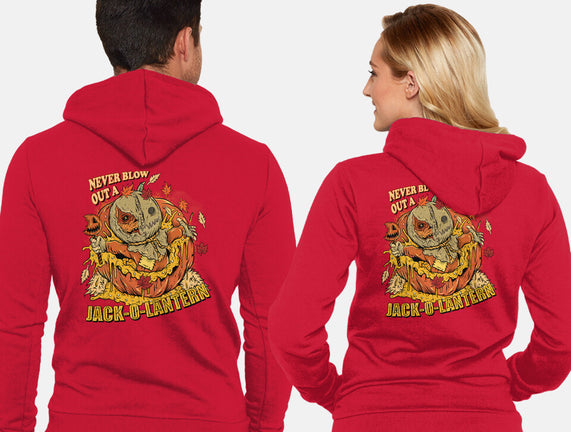 Never Blow Out A Jack-O-Lantern is a great Unisex Zip-Up Sweatshirt from our amazing collection of custom fandom inspired products. This product was designed by Green Devil, who is part of our exclusive pop-culture inspired artist community.