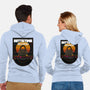 50% cotton, 50% polyester. Classic fit. Metal zipper and pouch pockets. Artwork printed on the back. Wash inside-out in cold water and hang on tumble dry on low heat to maximize the life of your sweatshirt.