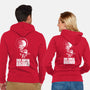 50% cotton, 50% polyester. Classic fit. Metal zipper and pouch pockets. Artwork printed on the back. Wash inside-out in cold water and hang on tumble dry on low heat to maximize the life of your sweatshirt.