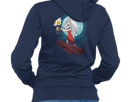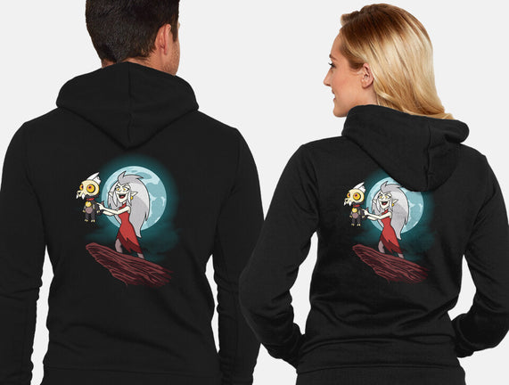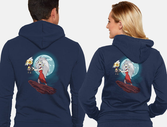 50% cotton, 50% polyester. Classic fit. Metal zipper and pouch pockets. Artwork printed on the back. Wash inside-out in cold water and hang on tumble dry on low heat to maximize the life of your sweatshirt.