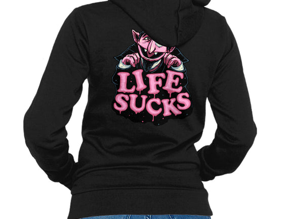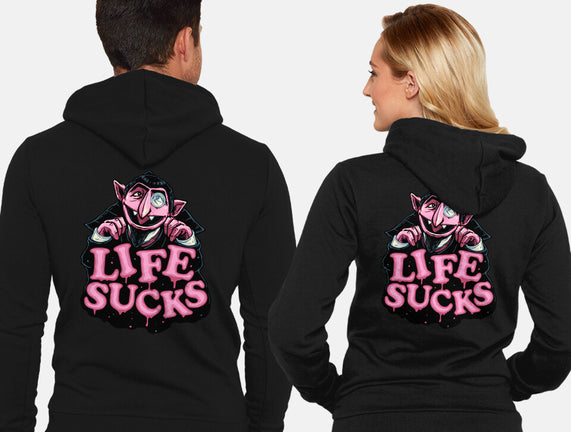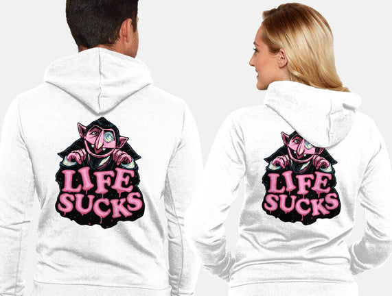 This Life Sucks is a great Unisex Zip-Up Sweatshirt from our amazing collection of custom fandom inspired products. This product was designed by glitchygorilla, who is part of our exclusive pop-culture inspired artist community.