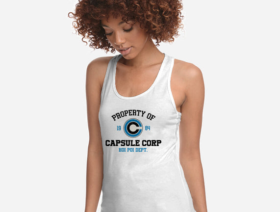 Property Of Capsule Corp is a great Womens Racerback Tank from our amazing collection of custom fandom inspired products. This product was designed by Melonseta, who is part of our exclusive pop-culture inspired artist community.
