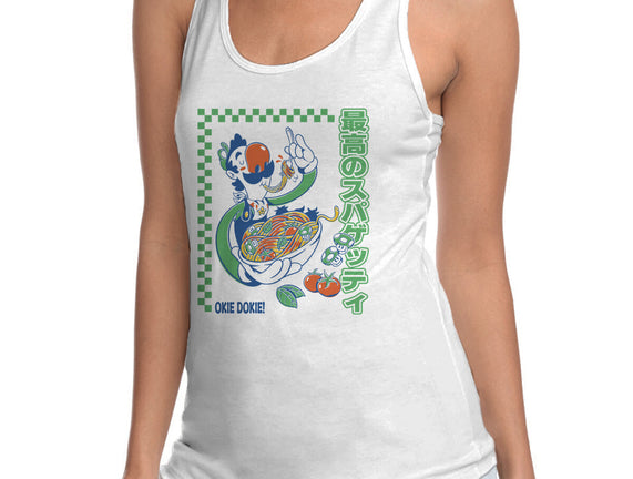 Spaghetti Time is a great Womens Racerback Tank from our amazing collection of custom fandom inspired products. This product was designed by Henrique Torres, who is part of our exclusive pop-culture inspired artist community.