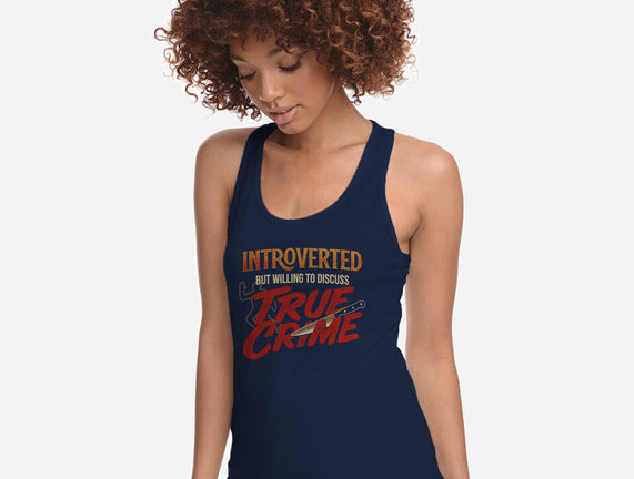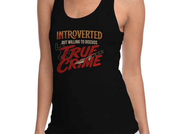 Willing To Discuss True Crime is a great Womens Racerback Tank from our amazing collection of custom fandom inspired products. This product was designed by Popnotic, who is part of our exclusive pop-culture inspired artist community.