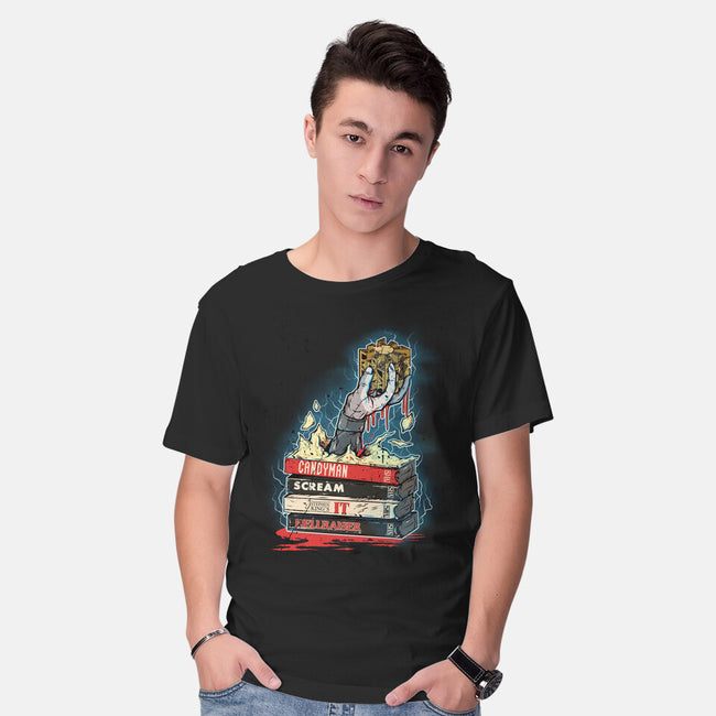 90s VHS Horror Cult is a great Mens Basic Tee from our amazing collection of custom fandom inspired products. This product was designed by Green Devil, who is part of our exclusive pop-culture inspired artist community.