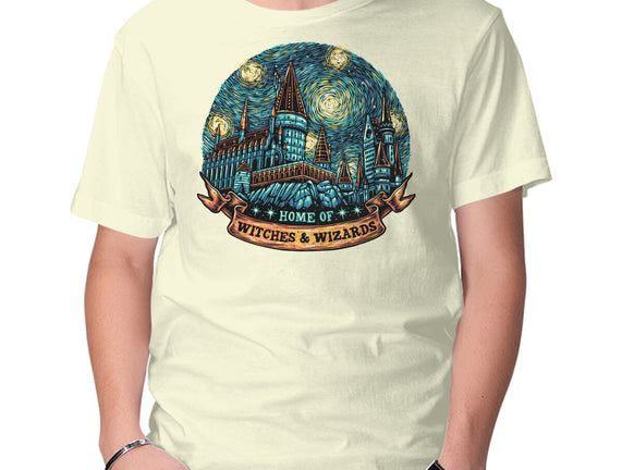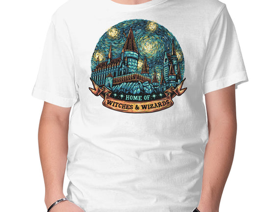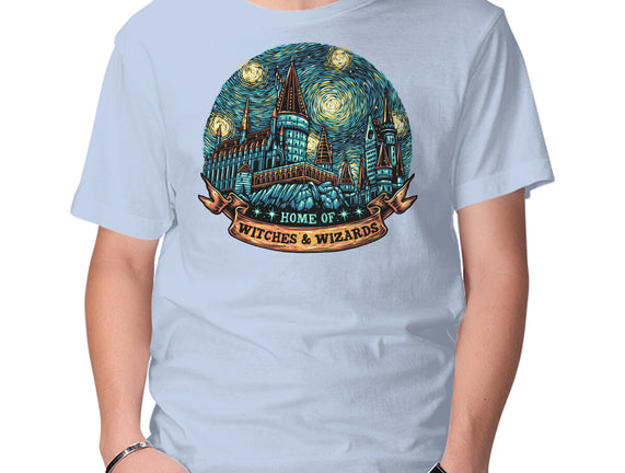 Home Of Witches And Wizards is a great Mens Basic Tee from our amazing collection of custom fandom inspired products. This product was designed by glitchygorilla, who is part of our exclusive pop-culture inspired artist community.
