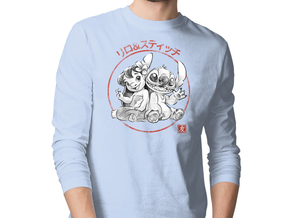 Aloha And Cosmo Sumi-E is a great Mens Long Sleeved Tee from our amazing collection of custom fandom inspired products. This product was designed by Astrobot Invention, who is part of our exclusive pop-culture inspired artist community.