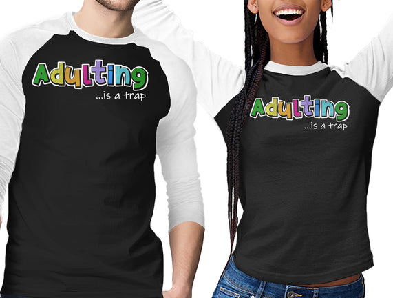 Adulting Is A Trap is a great Unisex Baseball Tee from our amazing collection of custom fandom inspired products. This product was designed by NMdesign, who is part of our exclusive pop-culture inspired artist community.