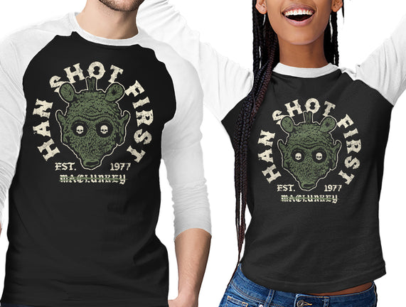Han Shot First is a great Unisex Baseball Tee from our amazing collection of custom fandom inspired products. This product was designed by Wheels, who is part of our exclusive pop-culture inspired artist community.