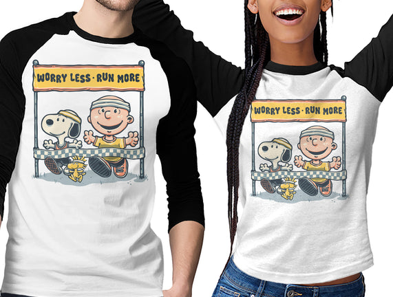 Worry Less Run More is a great Unisex Baseball Tee from our amazing collection of custom fandom inspired products. This product was designed by glitchygorilla, who is part of our exclusive pop-culture inspired artist community.