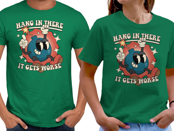 Hang In There It Gets Worse is a great Unisex Basic Tee from our amazing collection of custom fandom inspired products. This product was designed by RoboMega, who is part of our exclusive pop-culture inspired artist community.