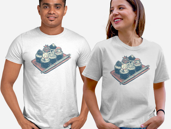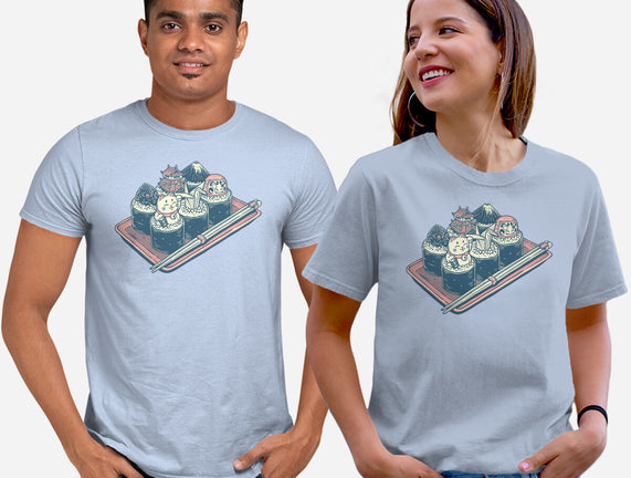Sushi Family is a great Unisex Basic Tee from our amazing collection of custom fandom inspired products. This product was designed by glitchygorilla, who is part of our exclusive pop-culture inspired artist community.
