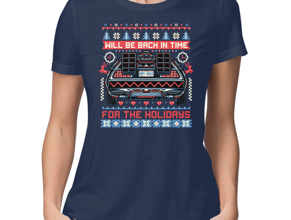 Back In Time For The Holidays is a great Womens Basic Tee from our amazing collection of custom fandom inspired products. This product was designed by glitchygorilla, who is part of our exclusive pop-culture inspired artist community.