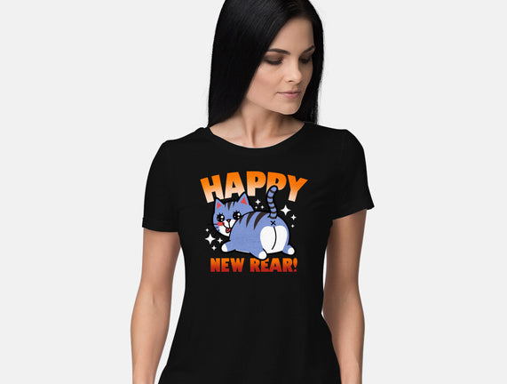Happy New Rear is a great Womens Basic Tee from our amazing collection of custom fandom inspired products. This product was designed by Boggs Nicolas, who is part of our exclusive pop-culture inspired artist community.