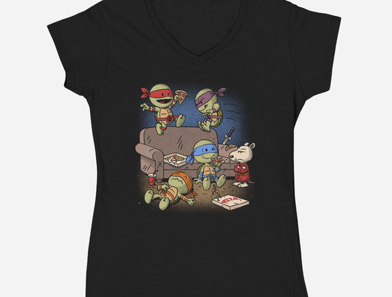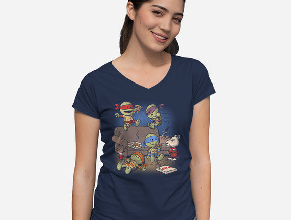 Cowabunga Couch Party is a great Womens V-Neck Tee from our amazing collection of custom fandom inspired products. This product was designed by Popnotic, who is part of our exclusive pop-culture inspired artist community.