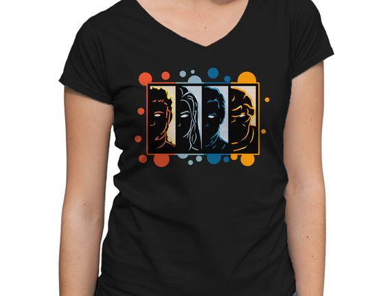 Four Faces is a great Womens V-Neck Tee from our amazing collection of custom fandom inspired products. This product was designed by nickzzarto, who is part of our exclusive pop-culture inspired artist community.