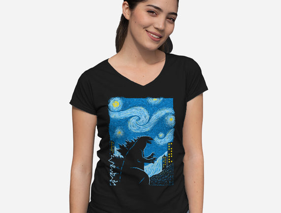 Gogh-Zilla is a great Womens V-Neck Tee from our amazing collection of custom fandom inspired products. This product was designed by Umberto Vicente, who is part of our exclusive pop-culture inspired artist community.