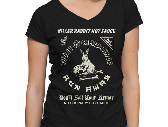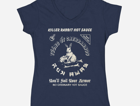 Killer Rabbit Hot Sauce is a great Womens V-Neck Tee from our amazing collection of custom fandom inspired products. This product was designed by kg07, who is part of our exclusive pop-culture inspired artist community.