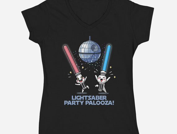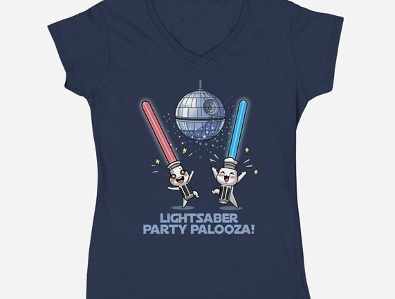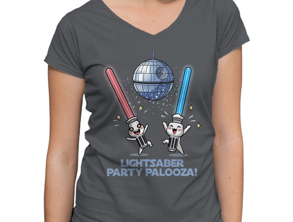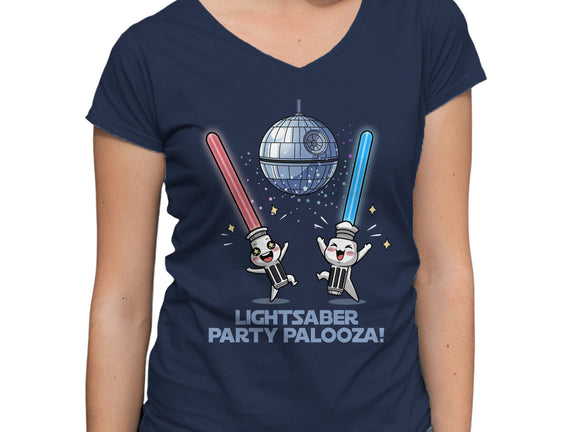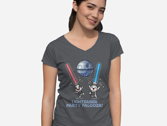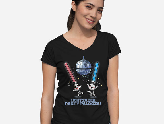 Lightsaber Party Palooza is a great Womens V-Neck Tee from our amazing collection of custom fandom inspired products. This product was designed by Lorets, who is part of our exclusive pop-culture inspired artist community.
