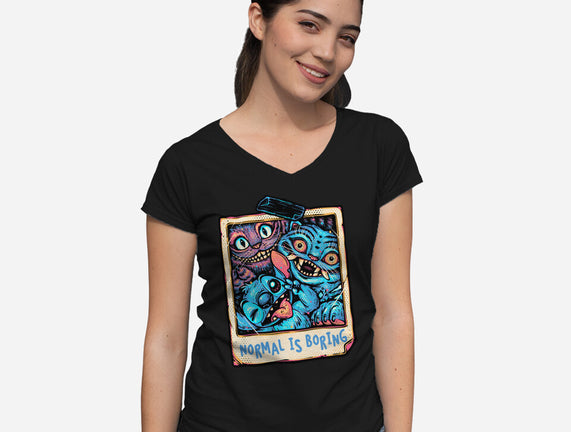 Normal Is Super Boring is a great Womens V-Neck Tee from our amazing collection of custom fandom inspired products. This product was designed by glitchygorilla, who is part of our exclusive pop-culture inspired artist community.