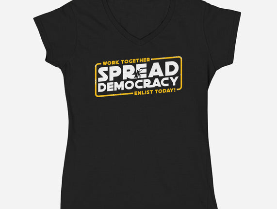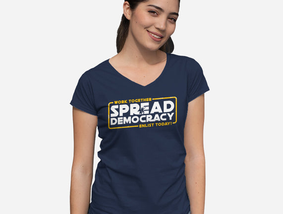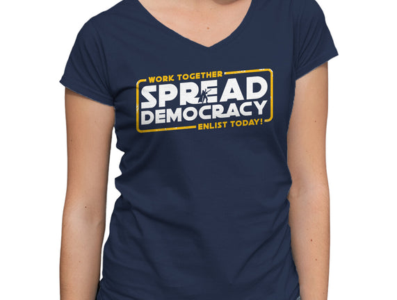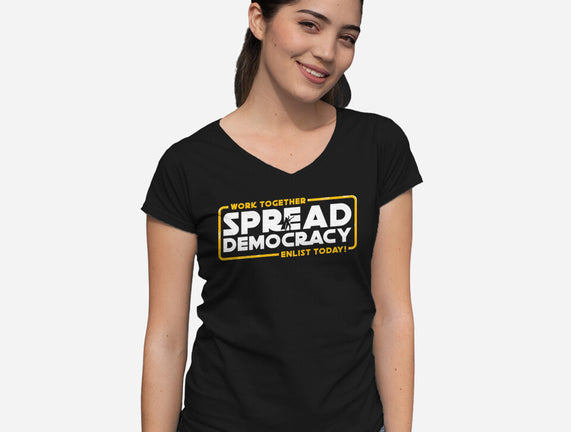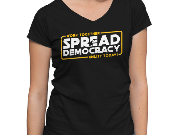 Spread Democracy is a great Womens V-Neck Tee from our amazing collection of custom fandom inspired products. This product was designed by rocketman_art, who is part of our exclusive pop-culture inspired artist community.