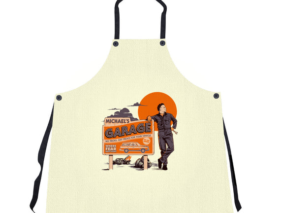 Michael's Garage is a great Unisex Kitchen Apron from our amazing collection of custom fandom inspired products. This product was designed by Hafaell, who is part of our exclusive pop-culture inspired artist community.