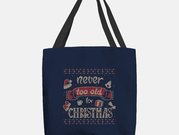 Never Too Old For Christmas is a great None Basic Tote Bag from our amazing collection of custom fandom inspired products. This product was designed by xMorfina, who is part of our exclusive pop-culture inspired artist community.