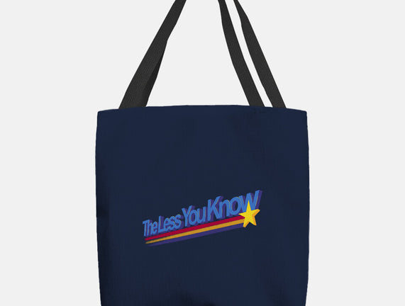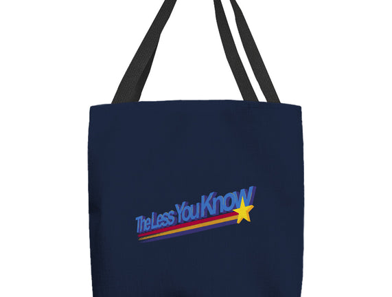 The Less You Know is a great None Basic Tote Bag from our amazing collection of custom fandom inspired products. This product was designed by estudiofitas, who is part of our exclusive pop-culture inspired artist community.