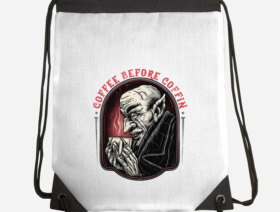 Coffee Before Coffin is a great None Drawstring Bag from our amazing collection of custom fandom inspired products. This product was designed by glitchygorilla, who is part of our exclusive pop-culture inspired artist community.