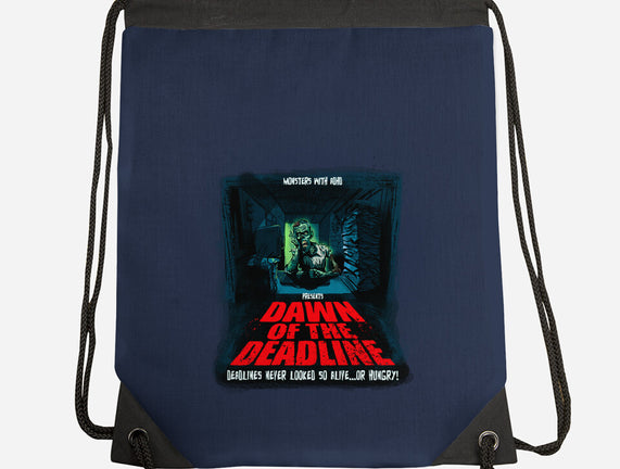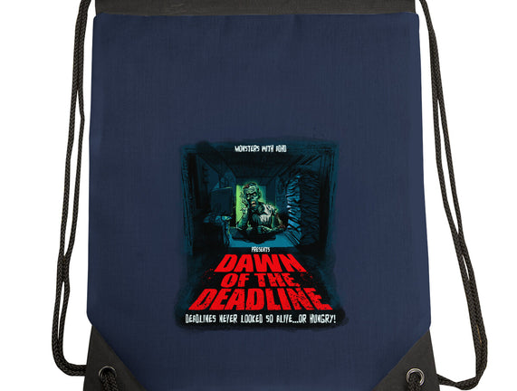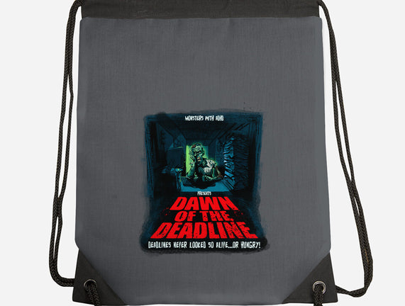 Dawn Of The Deadline is a great None Drawstring Bag from our amazing collection of custom fandom inspired products. This product was designed by Monsters with ADHD, who is part of our exclusive pop-culture inspired artist community.