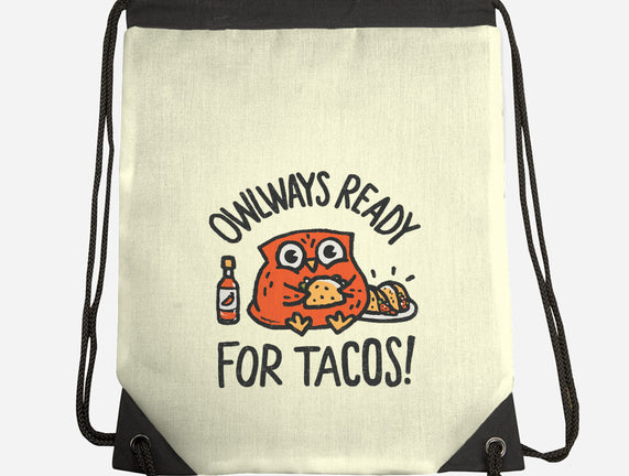Owlways Ready For Tacos is a great None Drawstring Bag from our amazing collection of custom fandom inspired products. This product was designed by Wenceslao A Romero, who is part of our exclusive pop-culture inspired artist community.