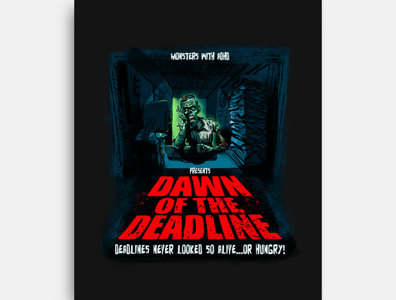 Dawn Of The Deadline is a great None Stretched Canvas from our amazing collection of custom fandom inspired products. This product was designed by Monsters with ADHD, who is part of our exclusive pop-culture inspired artist community.