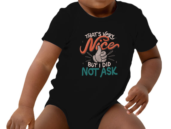 I Did Not Ask is a great Baby Basic Onesie from our amazing collection of custom fandom inspired products. This product was designed by tobefonseca, who is part of our exclusive pop-culture inspired artist community.