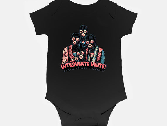 Introverts Unite is a great Baby Basic Onesie from our amazing collection of custom fandom inspired products. This product was designed by glitchygorilla, who is part of our exclusive pop-culture inspired artist community.