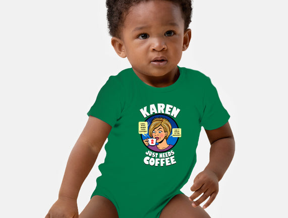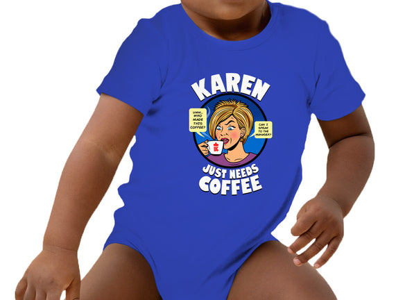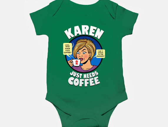 Karen Just Needs Coffee is a great Baby Basic Onesie from our amazing collection of custom fandom inspired products. This product was designed by Boggs Nicolas, who is part of our exclusive pop-culture inspired artist community.